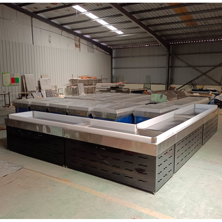 海鮮冰臺尺寸很多廠家都有自己的標準,也有挺多超市按照自己的賣場位置尺寸定制冰鮮臺的規格,但是大多都是2米長的,寬度在 80---100厘米之間,冰鮮臺的高度在0.8米高,有的上面帶白色PE擋板或者玻璃擋板,我們的F6款冰鮮臺和F9款冰鮮臺的標準尺寸是 2x0.85x0.8米,臺面帶擋板的高度為0.75米,玻璃的高度為12公分。也有的是定制的,高度不統一。F3款冰臺的標準尺寸是 1.8x0.9x0.8米,橫著或者豎著擺放都比較合適,容易對齊,兩臺F3款冰鮮臺的寬度正好是一臺的長度。