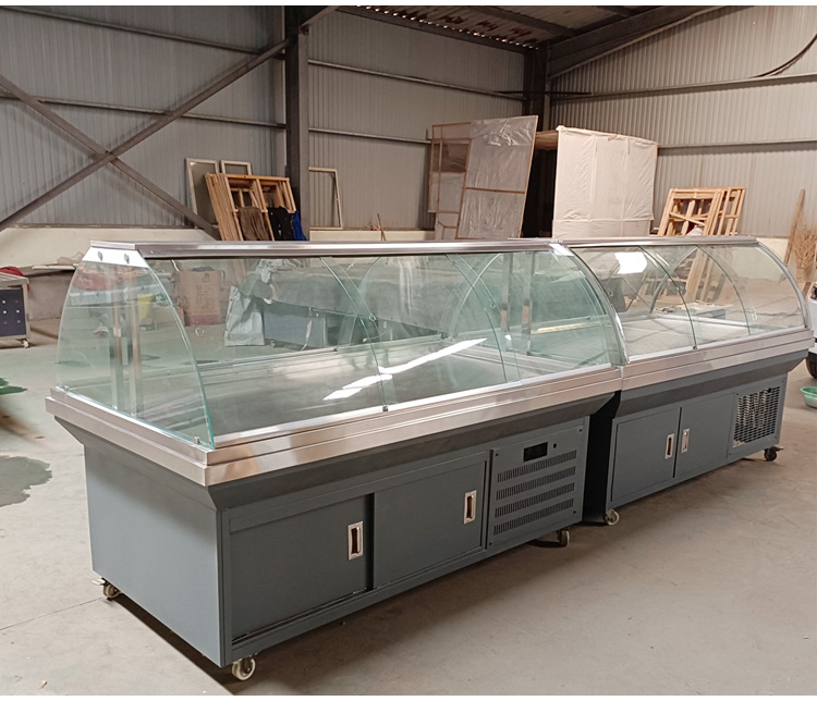 雙面開門熟食保鮮柜有風冷式保鮮和直冷式保鮮,超市一般是中間放置,熟食柜的兩面面通道,雙面柜的兩面為玻璃推拉門,用戶兩面都可以取貨,客戶更方便,風冷式保鮮相對比超市選擇的比較多,柜子頂部是一個款32公分的不銹鋼平臺,可以放一些包裝食品或者放飲料或者臨時放客戶選擇的袋裝食品均可。